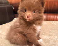 Halo was born on 9/08/2025 from Shelby x Chemo. She is a beautiful AKC Chocolate w/white & a small bit of tan Pomeranian puppy. She has hazel eyes & is a very sweet puppy who is very relaxed. She loves to cuddle & is very content sleeping in my hands. Halo's birth weight was 4.5 oz. She started her Early Neurological Stimulation (ENS) and Early Scent Detection (ESI) at 3-16 Days old. She will be up to date on any vaccinations she is able to have & will be vet checked & dewormed. She will also come with a health guarantee and her AKC paperwork. *If you visit our past puppies page under Shelby x Chemo she should look a lot like her sister Cloey.